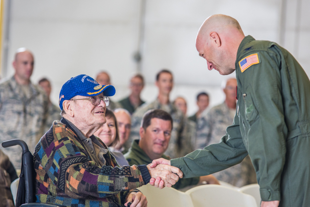 The story I needed to capture here was service members of new honoring those of old. Although I was farther away than I would have liked, I still was able to capture the emotion on the face of our veteran. That’s what I needed. The whole scene is framed by the out of focus Airmen in formation which add more context to the scene.